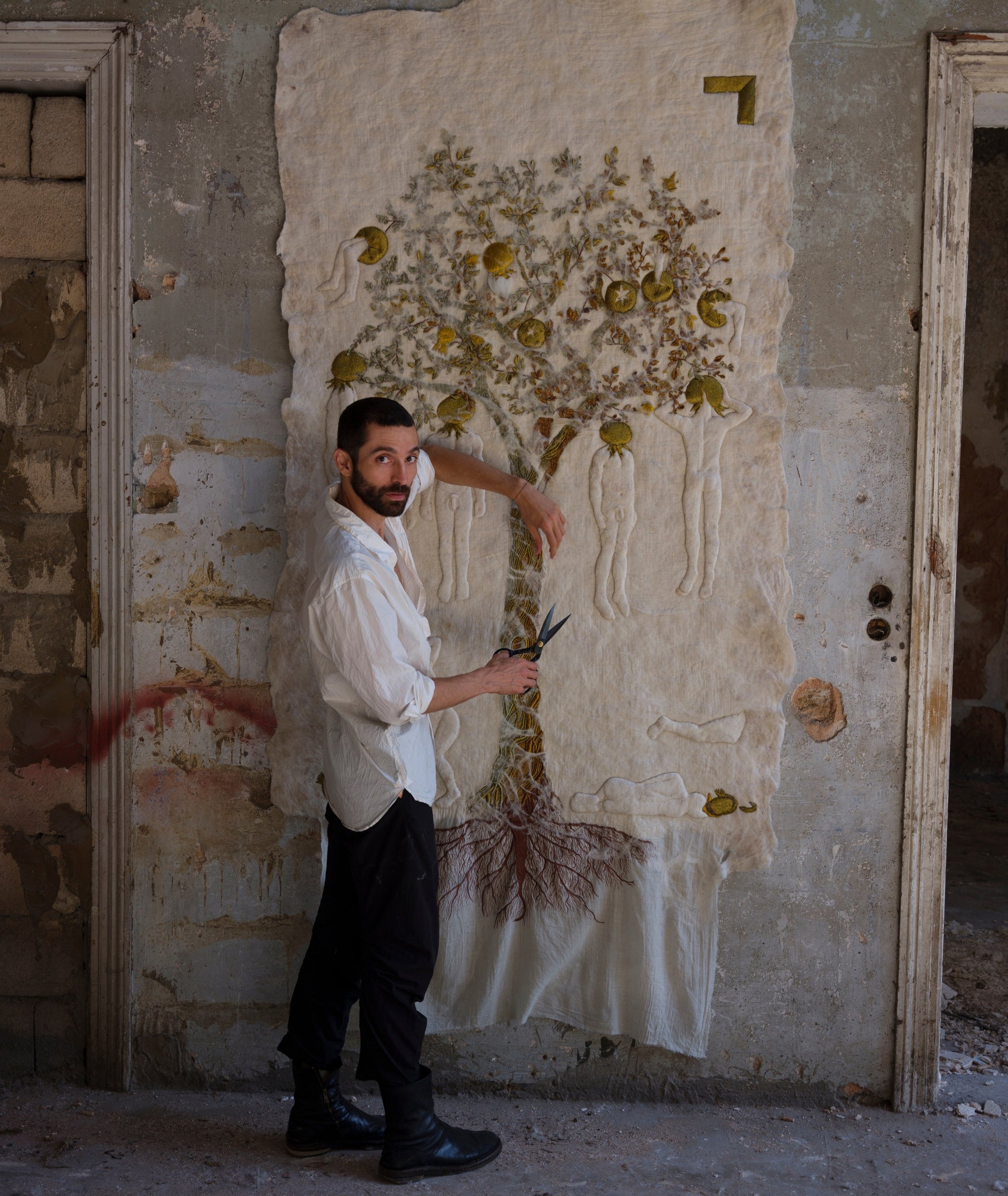 Anchored in the rich tapestry of Levantine craftsmanship, Pepe's practice represents a soulful collaboration with artisans whose hands carry generational knowledge. His work - at once reverential and revolutionary - transforms ancient weaving techniques into contemporary expressions of identity and memory. Through this material dialogue, Pepe not only preserves disappearing traditions but elegantly subverts the conventional boundaries between craft and high art, creating tactile poetry that speaks to both past and present.