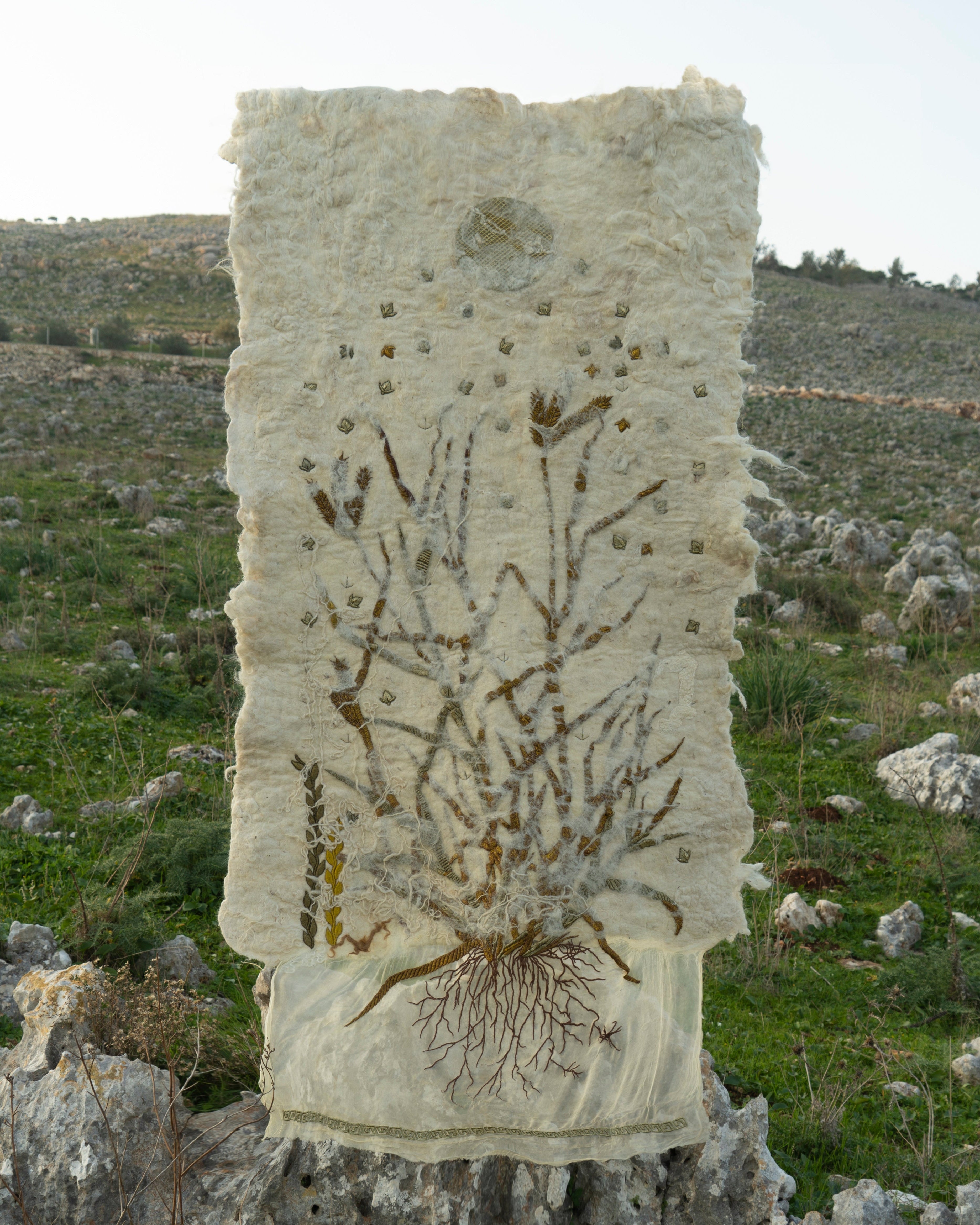 My practice uses fibre, especially wool, as a way to think through systems of labor, ecology, and ritual.